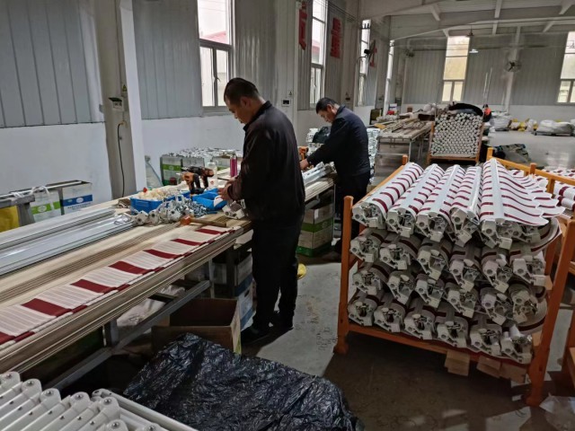 We hebben onze eigen productielijnen voor aluminium extrusie en sproeien, raamscherm weven en vouwen, vliegdeur en raammontage, naaiglengsels voor gordijn en luifel etc.